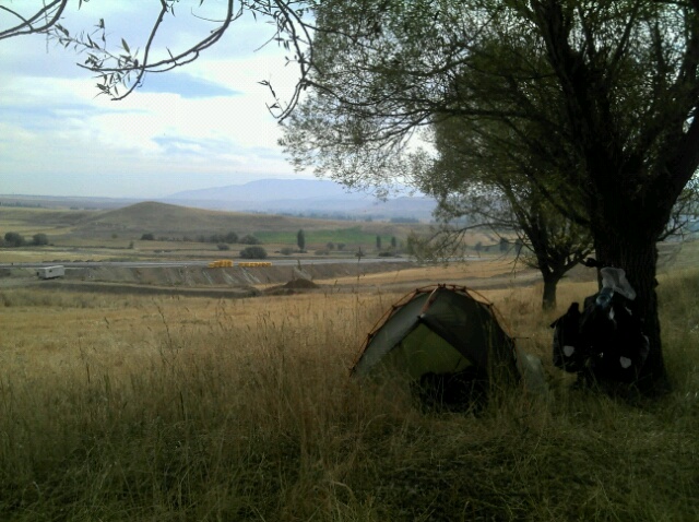 I celebrated it by cycling more than 100km and hitting a new altitude record: 1775m ! All this in a remarkably unremarkable landscape - not ugly, not at all, just unremarkable: hills covered by yellowish-brownish fields under a cloudy sky. After a couple of days in the mindblowing landscape of cappadocia this was just the right thing to prevent sensory overload. The clouds looked even more eerie than yesterday but still no rain. Furthermore they kept the temperatures up in the night - an important aspect in a tent at more than 1000m.