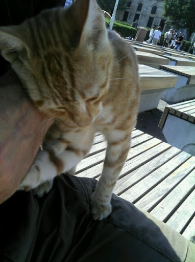 Act 2: After about an hour, I was actually sleeping on my deck chair, more visitors: finally the owner showed up, escorted by an older couple, all three seriously canned. The owner was all "no problem, stay here, no money *silly giggle*...", so I thought everything is fine, I can keep on sleeping - but no: they were in party mood! So soon I found myself playing guitalele to three drunk Turks and a dog, yeah! Eventually they brought some more booze - I figured that I would have a hard time keeping up with them considering their lead over me, so I tried my best to leave the party for my deck chair. After some discussion I succeeded and all I still noticed was some policemen joining and starting a dispute I did not understand. All I know: it was not about me and noone got arrested, so I finally could relax under the wonderful starry sky, puh!